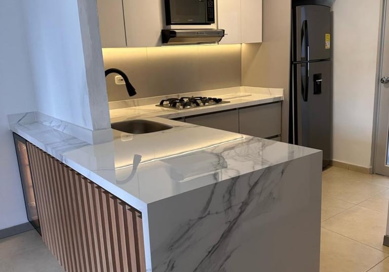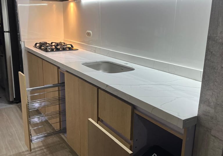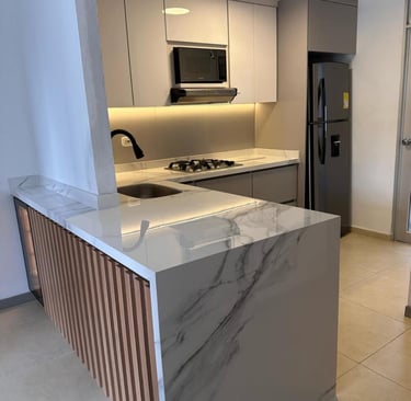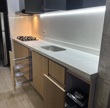 En este proyecto transformamos la cocina en un espacio moderno, funcional y elegante. Diseñamos cada detalle para aprovechar al máximo el área, incorporando muebles a medida, superficies resistentes y acabados de alta calidad que elevan la estética del hogar.